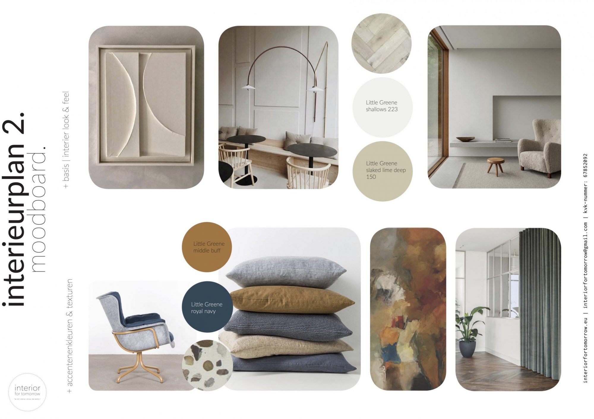 Uiteraard kunnen woonwensen op verschillende manieren vertaald worden. Elementen uit verschillende passende sferen kunnen gemixt en gematcht tot een persoonlijk geheel. In dit geval leverde een schilderij van onze opdrachtgevers twee verschillende sfeerbeelden op. De basis is in beide gevallen rustig, maar de (kleur-)accenten zijn net even anders gekozen.