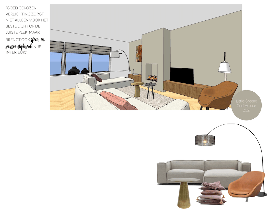 voorafgaand aan hun verhuizing waren onze opdrachtgevers op zoek naar de indelingsmogelijkheden van de begane grond van hun nieuwe woning en naar inspiratie voor een warmere woonstijl.